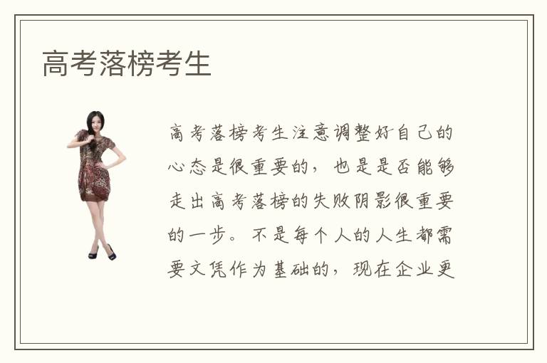 高考落榜考生注意调整好自己的心态是很重要的,也是是否能够走出高考落榜的失败阴影很重要的一步。不是每个人的人生都需要文凭作为基础的,现在企业更看中的是专业技术可靠的人才,因此高考落榜考生不能对自己的未来失去希望,要为自己今后的人生确立目标,充分考虑到国内各大市场的发展情况,要根据自己实际情况以及想要学习的专业特点进行合理的课程专业的安排。