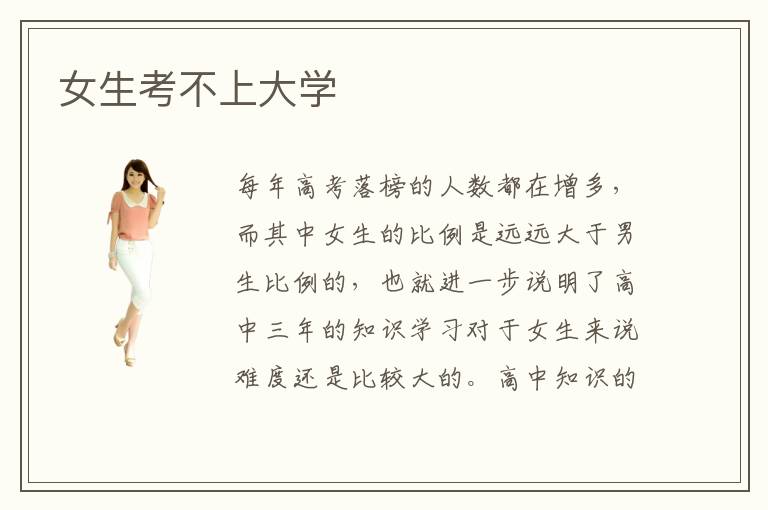 每年高考落榜的人数都在增多,而其中女生的比例是远远大于男生比例的,也就进一步说明了高中三年的知识学习对于女生来说难度还是比较大的。高中知识的学习是需要逻辑思维能力的,尤其是高中的理科,但是就逻辑思维能力而言男生是比较优秀的,这也就造成了很多女生在高考过程中失利的情况。那么,女生考不上大学应该怎么办呢?女生考不上大学可以去哪些平台进行这样学习呢?