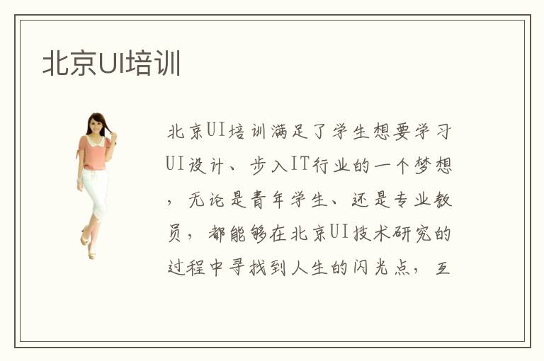北京UI培训满足了学生想要学习UI设计、步入IT行业的一个梦想,无论是青年学生、还是专业教员,都能够在北京UI技术研究的过程中寻找到人生的闪光点,互惠互利、共同进步。北京地区UI设计培训机构有哪几家?北京UI培训机构大多分布在交通便利、出行快捷的优质地段,受到广大学子的喜爱。北京UI培训学校注重学生未来的发展潜力的挖掘和锻炼,是很可靠的。