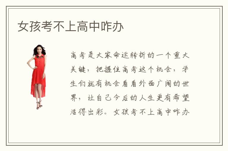 高考是大家命运转折的一个重大关键,把握住高考这个机会,学生们就有机会看看外面广阔的世界,让自己今后的人生更有希望活得出彩。女孩考不上高中考不上高中咋办?女孩高考失败怎么办?女孩考不上高中怎么有好出路吗?女同学高考失败和男同学一样,要好好反思自己的失败原因是什么,然后找到原因,对症下药,尽可能按照自己的兴趣爱好进行专业的选择。