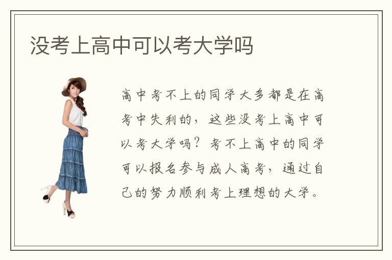 高中考不上的同学大多都是在高考中失利的,这些没考上高中可以考大学吗?考不上高中的同学可以报名参与成人高考,通过自己的努力顺利考上理想的大学。其实现如今成立的很多高职技术培训学校有人的很不错的,只是在文凭学历方面比不上大学教学,然而现在很多企业更注重的是求职者的专业技术水平,因此考不上高中的同学可以进入这些高职技术培训学校进行学习。