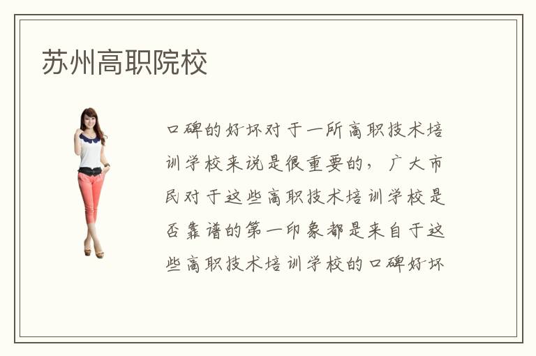 口碑的好坏对于一所高职技术培训学校来说是很重要的,广大市民对于这些高职技术培训学校是否靠谱的第一印象都是来自于这些高职技术培训学校的口碑好坏。那么,苏州高职院校的口碑怎么样呢?苏州高职院校拥有国内一流的专业课程教学团队,在这样靠谱的教学团队带领下,学好专业技术也并不困难了,苏州高职院校在校学员一定可以更快更好的完成相关专业技术的学习。