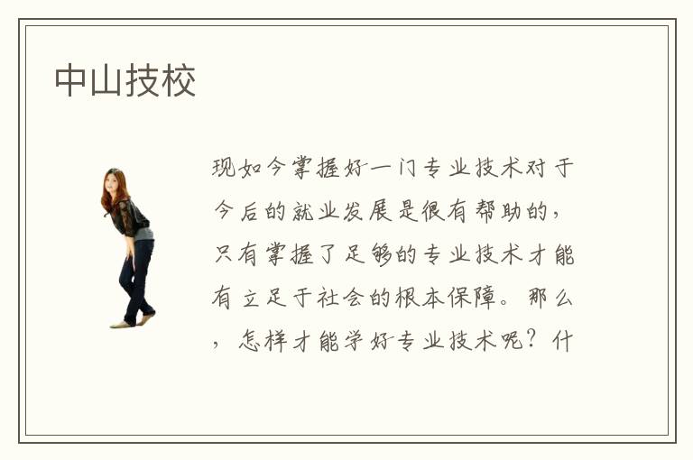 现如今掌握好一门专业技术对于今后的就业发展是很有帮助的,只有掌握了足够的专业技术才能有立足于社会的根本保障。那么,怎样才能学好专业技术呢?什么样的专业技术才是值得大家去学习的呢?中山技校是一所以专业技术培训为重点的学校,在专业课程的安排方面都是得到了大家认可的,是一所名副其实的靠谱培训机构,中山技校还会根据现今社会的发展以及学员们的专业情况进行专业的推荐学习。