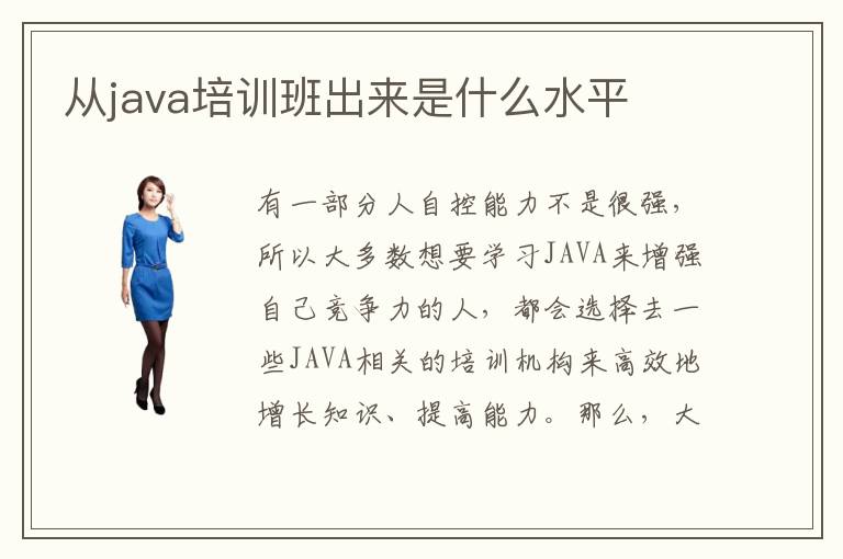有一部分人自控能力不是很强,所以大多数想要学习JAVA来增强自己竞争力的人,都会选择去一些JAVA相关的培训机构来高效地增长知识、提高能力。那么,大家也很关心,如果我们选择了去java培训机构学习,从培训班出来后我们的java水平是怎样的呢?从java培训机构出来后水平如何?经过java培训班的学习,毕业者的JAVA能力达到什么样的程度了?