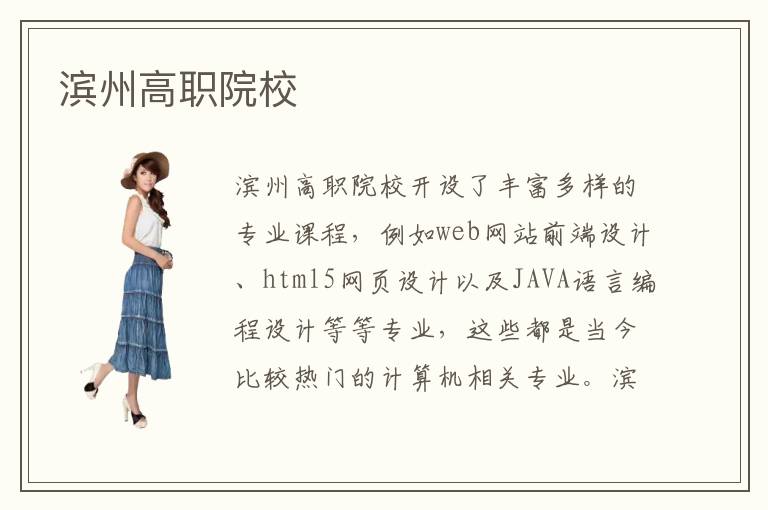 滨州高职院校开设了丰富多样的专业课程,例如web网站前端设计、html5网页设计以及JAVA语言编程设计等等专业,这些都是当今比较热门的计算机相关专业。滨州高职院校一流的专业课程教学团队,使得学员们的专业课程学习效果有了显著的提升,也进一步提升了学员们的学习效率,使得滨州高职院校的专业学习可以得到更快更好的质量,也就能更快更好的完成相关专业的学习。