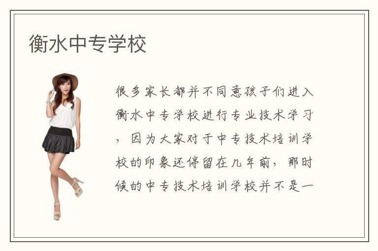很多家长都并不同意孩子们进入衡水中专学校进行专业技术学习,因为大家对于中专技术培训学校的印象还停留在几年前,那时候的中专技术培训学校并不是一个适合学习的平台,教学经验还是相对其他高校比较逊色的。然而随着这两年的不断发展,衡水中专学校已经成为了一所专业的技术培训学校,也能通过自己的专业化培训使得在校学员们又快又好的完成相关专业的学习。