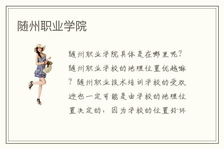 随州职业学院具体是在哪里呢?随州职业学校的地理位置优越嘛?随州职业技术培训学校的受欢迎也一定可能是由学校的地理位置决定的,因为学校的位置好坏直接程度影响了学生们的日常出行。随州职业培训机构招生力度如何?随州职业学校每年招收新的生源,虽然其名气目前还不是很高,但是只要学校依然以学生们的教育为主就一定会有大放异彩的一天。