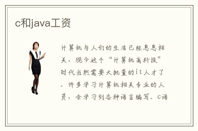 计算机与人们的生活已经息息相关,现今这个“计算机高科技”时代当然需要大批量的it人才了。许多学习计算机相关专业的人员,会学习到各种语言编写。c语言和java语言都属于it的基础编写语言,那么c和java工资分别多少呢?两者哪个更具有发展前景呢?c语言和java语言之间有着一些共同点,但同时具有不同点,c语言和java语言所运用的范围也是不一样的,工资的多少大多取决于你服务于什么软件