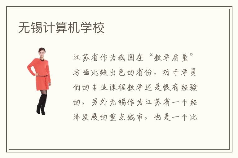 江苏省作为我国在“教学质量”方面比较出色的省份,对于学员们的专业课程教学还是很有经验的,另外无锡作为江苏省一个经济发展的重点城市,也是一个比较注重教学质量水平的城市。计算机相关专业是当下比较。热门的,学习计算机相关专业已经成为了一种潮流趋势,因此也就有越来越多的无锡计算机学校开始成立起来。那么,你知道这些无锡计算机学校的专业教学质量怎么样呢?