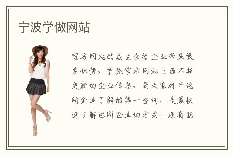 官方网站的成立会给企业带来很多优势,首先官方网站上面不断更新的企业信息,是大家对于这所企业了解的第一咨询,是最快速了解这所企业的方式。还有就是官方网站的成立使得企业的知名度得到一定的提高,是一种比较低成本的宣传方式。因此现在很多企业对于自己的官方网站建设都是很重视的,正在大量招聘优秀的网页设计师,那么在宁波学做网站这门专业的学习难度大不大呢?