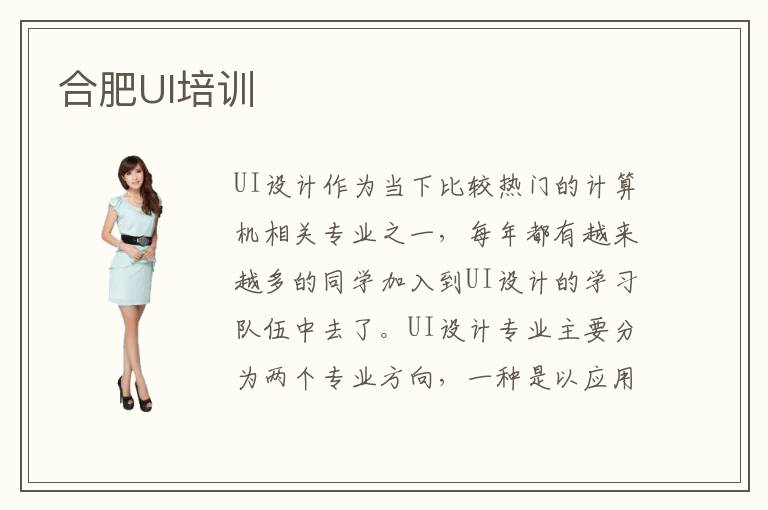 UI设计作为当下比较热门的计算机相关专业之一,每年都有越来越多的同学加入到UI设计的学习队伍中去了。UI设计专业主要分为两个专业方向,一种是以应用软件的界面美观程度设计为主的应用软件ui界面设计,还有一种就是以应用软件的交互设计方面为主的应用软件ui交互设计。这两种不同的专业方向需要学习的专业课程也是不同的,合肥UI培训机构为这两种专业制定了不同的学习课程。