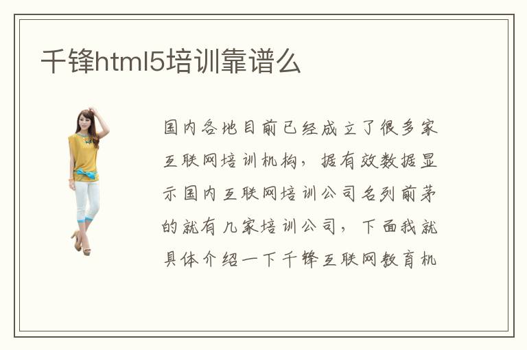 国内各地目前已经成立了很多家互联网培训机构,据有效数据显示国内互联网培训公司名列前茅的就有几家培训公司,下面我就具体介绍一下千锋互联网教育机构吧。很多人都在问千锋html5培训靠谱么?千锋的教学方式怎么样?进度快不快?千锋作为国内html5教育培训机构名列前茅的一家专业培训公司,师资力量强大,不同基础不同教学方式,这样的教学模式下,成为html5人才并不难。