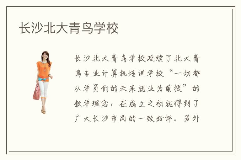 长沙北大青鸟学校延续了北大青鸟专业计算机培训学校“一切都以学员们的未来就业为前提”的教学理念,在成立之初就得到了广大长沙市民的一致好评。另外,长沙北大青鸟北大青鸟学校为了让广大市民更加深入了解学校的教学质量、师资团队以及教学方式等方面,更是开展了为期一周的“相关专业试学”活动,想要加入长沙北大青鸟学校学习,但是不确定自己是否合适的同学一定不要错过“试学”机会。