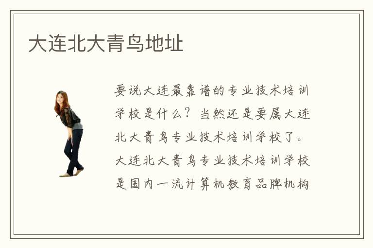 要说大连最靠谱的专业技术培训学校是什么?当然还是要属大连北大青鸟专业技术培训学校了。大连北大青鸟专业技术培训学校是国内一流计算机教育品牌机构,北大青鸟在大连地区开设的分校区。大连北大青鸟计算机培训学校坚持着北大青鸟一贯的“以学员们就业为基础”的教学理念,已经成功为大连市培养了很多优秀的计算机IT技术人才 ,也为推动大连的经济开发建设做贡献。那么,你知道大连北大青鸟地址在哪呢?