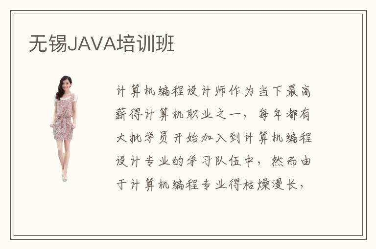计算机编程设计师作为当下最高薪得计算机职业之一,每年都有大批学员开始加入到计算机编程设计专业的学习队伍中,然而由于计算机编程专业得枯燥漫长,学员们半途而废也是常有的事情。怎样才能学好计算机编程专业呢?JAVA语言是一种面向对象、功能强大的编程语言,也是现如今编程设计师最常用得语言了,因此学好JAVA语言才是掌握计算机编程专业得关键,那么你知道哪家无锡JAVA培训班比较靠谱呢?