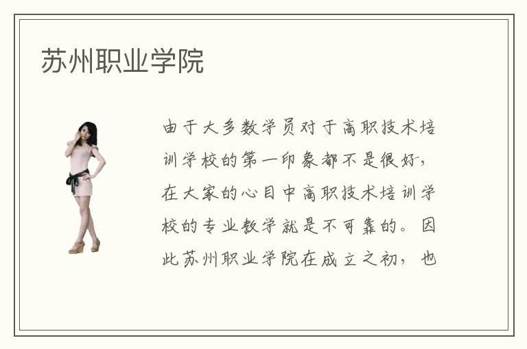 由于大多数学员对于高职技术培训学校的第一印象都不是很好,在大家的心目中高职技术培训学校的专业教学就是不可靠的。因此苏州职业学院在成立之初,也会因为大家对于传统高职技术培训学校的偏见,因此并不受到大家的肯定。苏州职业学院并没有因为这个而气馁,而是制定了一系列提高口碑的计划,用自己的专业化教学培训使得苏州职业学院的学员们可以享受到更高质量的教学。
