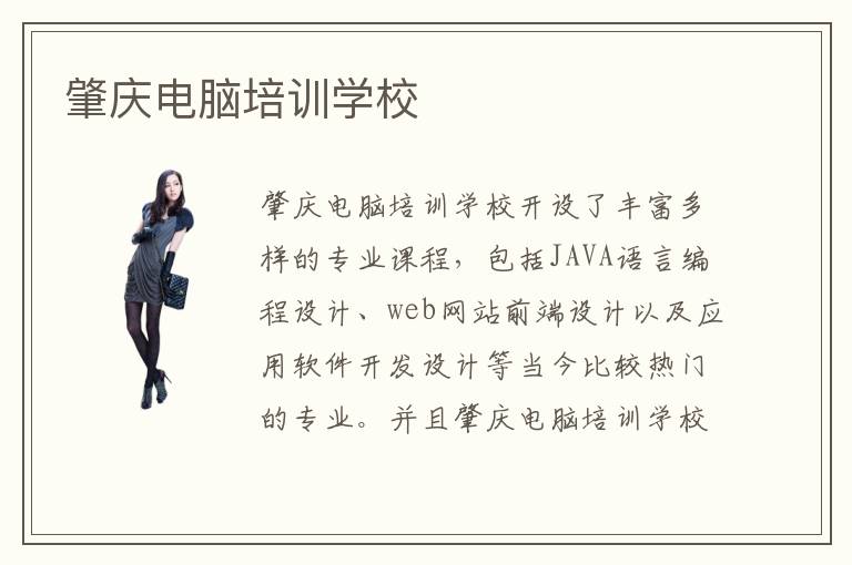 肇庆电脑培训学校开设了丰富多样的专业课程,包括JAVA语言编程设计、web网站前端设计以及应用软件开发设计等当今比较热门的专业。并且肇庆电脑培训学校会根据国内信息市场的变化,以及各大企业对于计算机相关技术型人才的需求特点进行专业课程的调整、更新,这样一来也就给肇庆电脑培训学校的在校学员提供了更多靠谱的工作机会,也给大家提供了一个有利的学习方向。