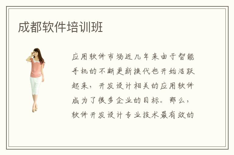 应用软件市场近几年来由于智能手机的不断更新换代也开始活跃起来,开发设计相关的应用软件成为了很多企业的目标。那么,软件开发设计专业技术最有效的学习方式是什么呢?怎样才能学好软件开发设计专业呢?成都软件培训班是一所专业的以“软件开发设计”专业培训为主的学校,在软件开发设计专业的教学方面还是比较权威的,想要学习软件开发设计专业的同学可以考虑一下成都软件培训软件培训班。