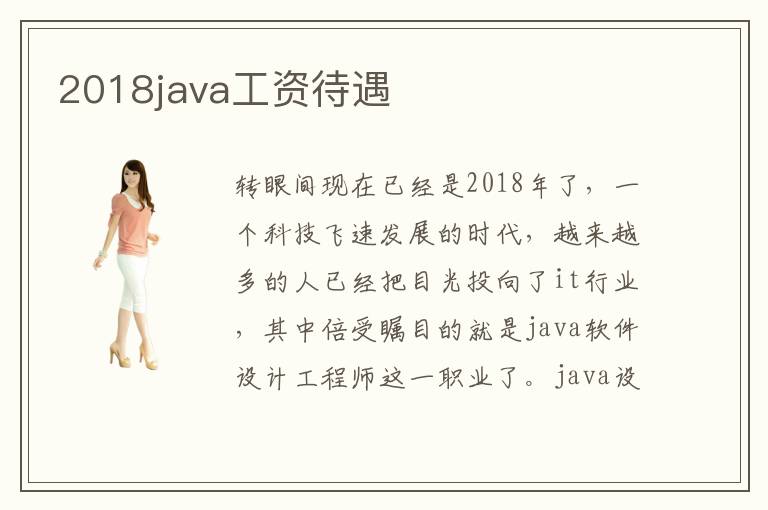 转眼间现在已经是2018年了,一个科技飞速发展的时代,越来越多的人已经把目光投向了it行业,其中倍受瞩目的就是java软件设计工程师这一职业了。java设计出的软件存在于互联网上的任何一个角落,成千上万的用户体验着java的强大,感受着java带来的工作与生活上的便捷。java软件设计师是一个高薪资的职业,那么,2018java工资待遇怎么样呢?2018java工资待遇好吗?