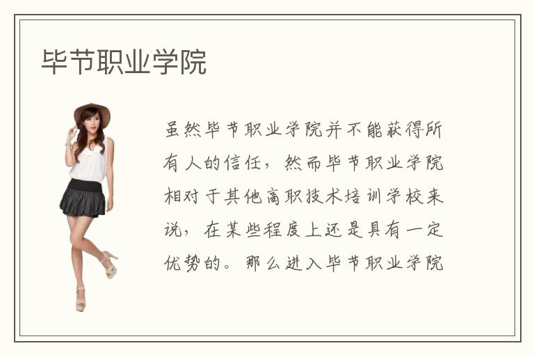 虽然毕节职业学院并不能获得所有人的信任,然而毕节职业学院相对于其他高职技术培训学校来说,在某些程度上还是具有一定优势的。那么进入毕节职业学院需要哪些要求呢?毕节职业学院的入学门槛是相对较低的,并不会过多的关注学员们的学习成绩,对于那些入学成绩并不是很优秀的同学,毕节职业学院并不会很介意,毕节职业学院更注重的是培养学员们的专业技术水平。