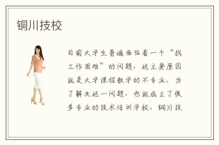 目前大学生普遍面临着一个“找工作困难”的问题,这主要原因就是大学课程教学的不专业。为了解决这一问题,也就成立了很多专业的技术培训学校,铜川技校就是其中之一。铜川技校拥有专业的教学团队,在专业课程的培训方面也是经验丰富的,完成了很多同学的IT梦想。并且铜川技校还有一定的就业保障,那就是为即将毕业的同学安排一些相关专业就业指导方面的课程。