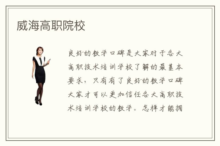 良好的教学口碑是大家对于各大高职技术培训学校了解的最基本要求,只有有了良好的教学口碑大家才可以更加信任各大高职技术培训学校的教学。怎样才能拥有良好的教学口碑呢?威海高职院校通过自己的专业化教学,成功培养了一批又一批优秀的技术型人才,因此可以说威海高职院校是通过自己的教学实力为自己赢得了良好的教学口碑,顺利获得了广大市民的好评。