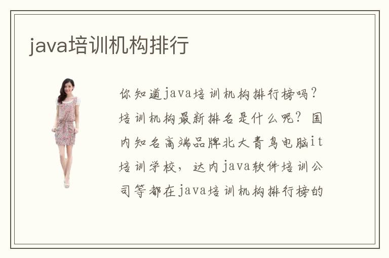 你知道java培训机构排行榜吗?培训机构最新排名是什么呢?国内知名高端品牌北大青鸟电脑it培训学校,达内java软件培训公司等都在java培训机构排行榜的前列。这是为什么呢?这些知名品牌的培训机构都有这样一些共同点,比如说培训机构的授课老师高学历,有经验,够专业,通过专业课程的培训,严格要求学生,让学生更高效率的学会java,学好java等等。