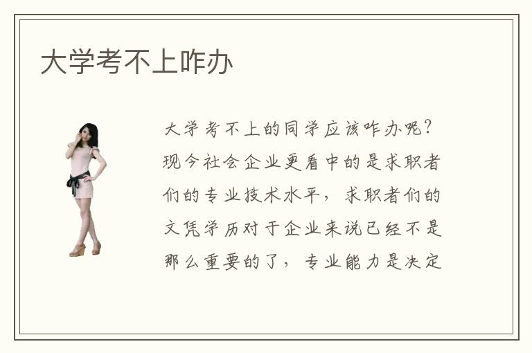 大学考不上的同学应该咋办呢?现今社会企业更看中的是求职者们的专业技术水平,求职者们的文凭学历对于企业来说已经不是那么重要的了,专业能力是决定求职者留下与否的根本。因此考不上好大学的同学需要做的第一步就是观察市场的发展趋势,选择一门适合自己的并且具有广阔发展前景的专业课程进行学习。要知道,学好一门专业技术对于今后的就业、工作是大有帮助的。