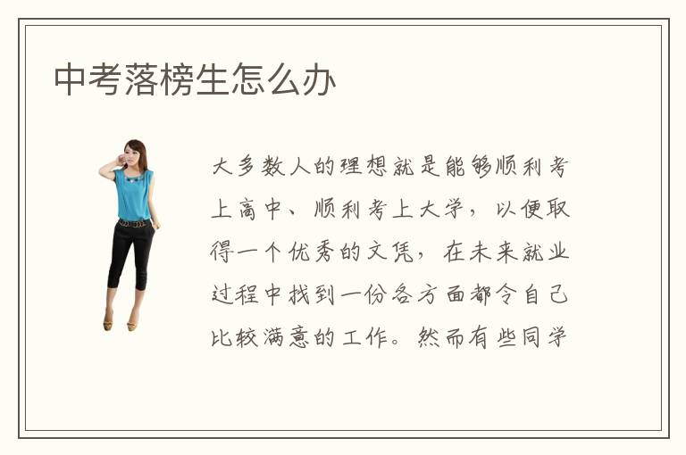 大多数人的理想就是能够顺利考上高中、顺利考上大学,以便取得一个优秀的文凭,在未来就业过程中找到一份各方面都令自己比较满意的工作。然而有些同学却在中考过程中失利,这就使得大多数同学的未来规划破灭了,那么,中考落榜生应该怎么办呢?中考落榜生也不要气馁,先调整好自己的心态,然后。选择一门合适的专业技术进行学习,为自己找到一个新的学习方向。