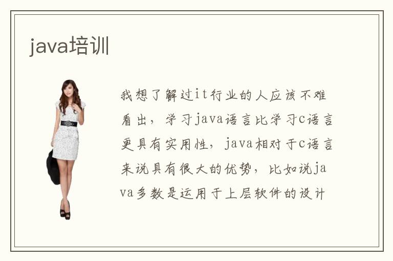 我想了解过it行业的人应该不难看出,学习java语言比学习c语言更具有实用性,java相对于c语言来说具有很大的优势,比如说java多数是运用于上层软件的设计上,这就使java在本身的设计上就占了大块优势,同时在占用内存这一方面也远远小于c语言,目前大量的安卓开发与java也息息相关。想要学习java语言,报名java培训班就是个不错的选择。