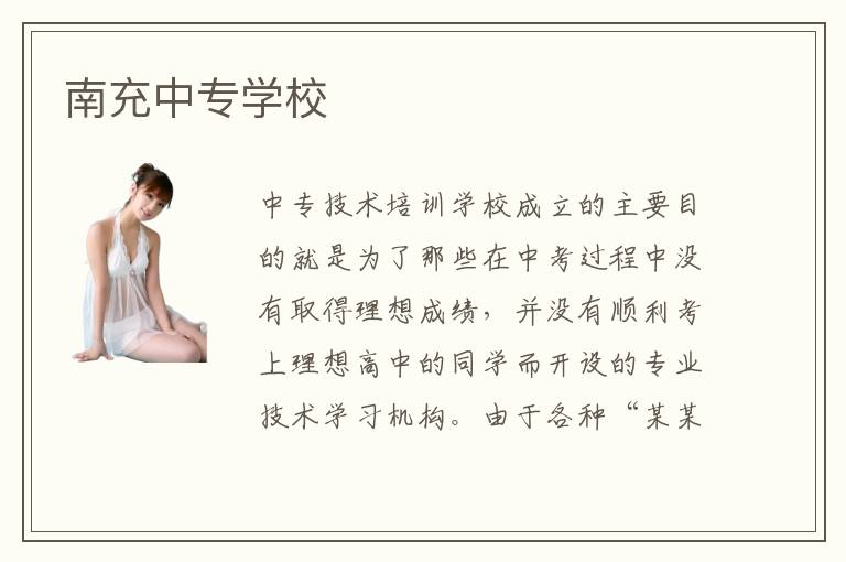 中专技术培训学校成立的主要目的就是为了那些在中考过程中没有取得理想成绩,并没有顺利考上理想高中的同学而开设的专业技术学习机构。由于各种“某某中专技术培训学校老师不负责”、“某某中专技术培训学校学生失业率高”等负面信息的传出,大家对于中专技术培训学校的评价自然也是不可靠的。南充中专学校作为中专技术培训学校之一,那么,大家对于南充中专学校的看法是什么呢?