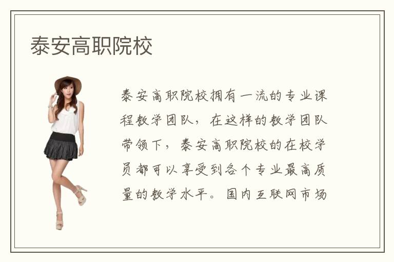 泰安高职院校拥有一流的专业课程教学团队,在这样的教学团队带领下,泰安高职院校的在校学员都可以享受到各个专业最高质量的教学水平。国内互联网市场对于计算机相关专业技术型人才的需求特点在不断变化,泰安高职院校也会有专人根据市场需求的变化不断调整更新相关专业,这样的一种做法,也就使得泰安高职院校大大的保障了学员们的未来就业。