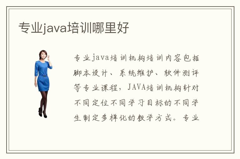 专业java培训机构培训内容包括脚本设计、系统维护、软件测评等专业课程,JAVA培训机构针对不同定位不同学习目标的不同学生制定多样化的教学方式。专业java培训哪家比较好?专业的java培训班哪家好?好的专业JAVA培训在哪里?java培训班专业的师资团队给学生带来了大量的操作经验,好的java培训班专业培训项目高效地保证了学生的就业率和就业前景。
