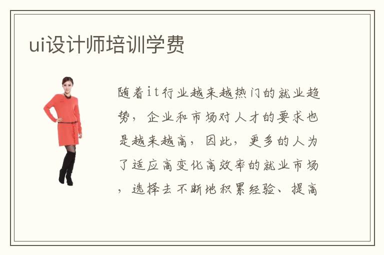 随着it行业越来越热门的就业趋势,企业和市场对人才的要求也是越来越高,因此,更多的人为了适应高变化高效率的就业市场,选择去不断地积累经验、提高能力,只有具备了高能力多经验,才能够有更足的底气,更多的自信去面对市场严峻的考验。ui设计师培训学费是多少?ui设计师设计师培训费用主要需要多少?ui设计师培训机构的培训课目贵吗?