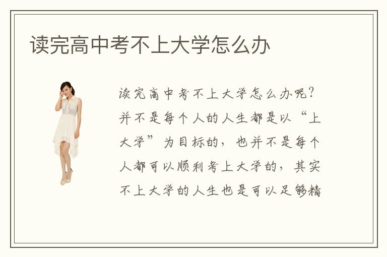 读完高中考不上考不上大学怎么办呢?并不是每个人的人生都是以“上大学”为目标的,也并不是每个人都可以顺利考上大学的,其实不上大学的人生也是可以足够精彩的。现如今各大企业看中的是求职者的能力,看中的是求职者的专业技术水平,因此学好一门专业技术才是让人生更加精彩的主力。读完高中考不上大学的同学可以选择当地比较靠谱的专业技术培训学校进行相关专业课程的学习。