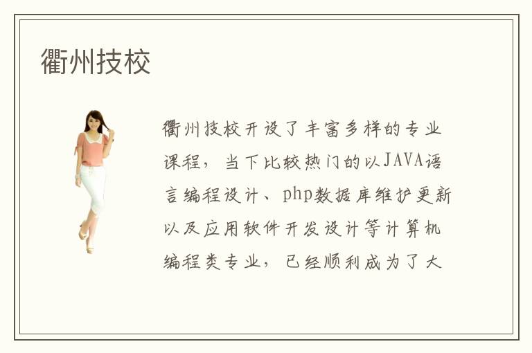 衢州技校开设了丰富多样的专业课程,当下比较热门的以JAVA语言编程设计、php数据库维护更新以及应用软件开发设计等计算机编程类专业,已经顺利成为了大家在衢州技校选择的热门专业。衢州技校开设了众多专业课程的同时,给学员们提供了更多选择的机会,也能使得越来越多的同学根据自己的兴趣爱好所在进行合理的专业选择,从而选择适合该专业学习的相关课程。
