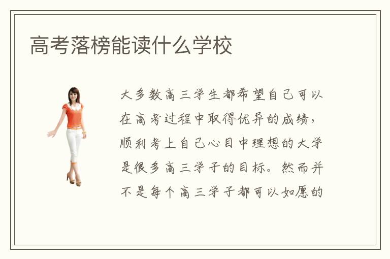 大多数高三学生都希望自己可以在高考过程中取得优异的成绩,顺利考上自己心目中理想的大学是很多高三学子的目标。然而并不是每个高三学子都可以如愿的,每年都会因为各种各样的原因造成高考落榜,那么这些高考落榜的同学能读什么学校呢?高考落榜的同学可以根据自己所要学习的相关专业,选择一所比较靠谱的专业技术培训学校进行专业课程的学习,这对于今后的就业也会存在一定帮助。