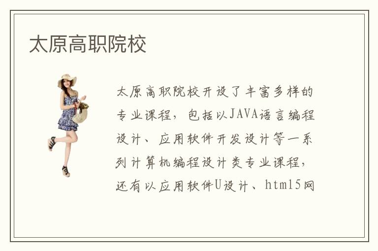 太原高职院校开设了丰富多样的专业课程,包括以JAVA语言编程设计、应用软件开发设计等一系列计算机编程设计类专业课程,还有以应用软件U设计、html5网页设计等一系列计算机设计类专业课程。同学们可以根据自身的实际情况、专业技术的学习能力以及相关专业的未来就业市场等,选择一门适合自己去学习的专业,再通过太原高职院校的专业化培训进行有效的学习。