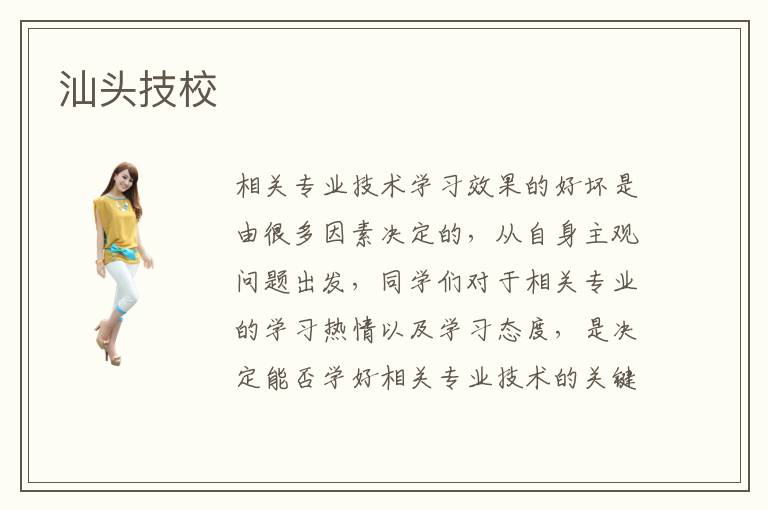 相关专业技术学习效果的好坏是由很多因素决定的,从自身主观问题出发,同学们对于相关专业的学习热情以及学习态度,是决定能否学好相关专业技术的关键。从环境等客观因素出发,相关专业技术培训学校的教学质量、课程设计以及教学方式等,也将会觉得相关专业技术学习效果的好坏。那么,你知道汕头技校的专业课程教学质量怎么样呢?汕头技校的培训效果好不好呢?