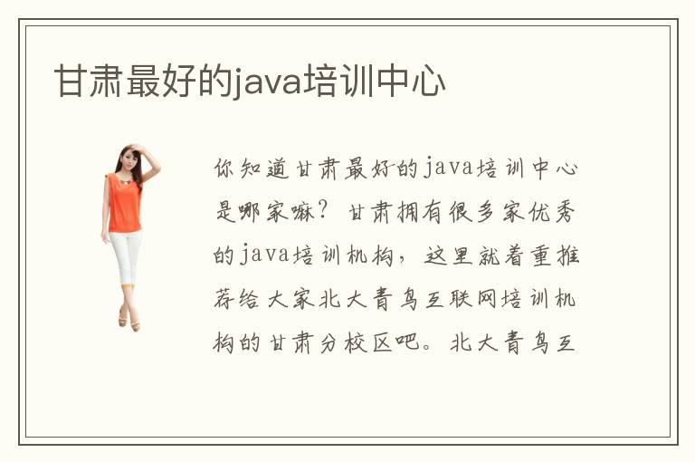 你知道甘肃最好的java培训中心是哪家嘛?甘肃拥有很多家优秀的java培训机构,这里就着重推荐给大家北大青鸟互联网培训机构的甘肃分校区吧。北大青鸟互联网培训学校总部成立在甘肃,由于互联网的不断盛行,开设了java编程以及html等专业课程,良好的口碑让它在国内各地都先后开设了授权的分机构,方便越来越多不同地区的学员报名学习,并推出了免费试学一周的课程,提前为大家打开java的大门。