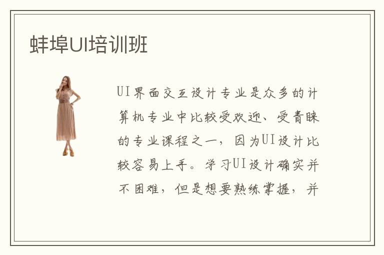 蚌埠UI培训班在UI专业培训方面下了一番功夫,首先参照国内的UI设计形势列出具有学习意义的相关课设,其次,利用学生高超的学习热情,把热血化为学习的动力,高效率地学习。蚌埠UI设计专业训练平台效果好不好?蚌埠UI培训学校拥有专业的高质量的教学力量。蚌埠UI培训机构学校论坛自从开设以来,帮助了不少学生及时得到问题的解决,效率大大提高了。