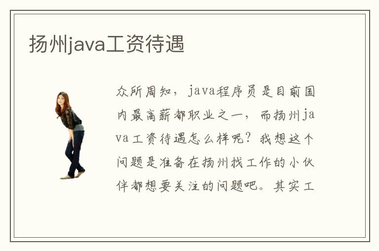 众所周知,java程序员是目前国内最高薪都职业之一,而扬州java工资待遇怎么样呢?我想这个问题是准备在扬州找工作的小伙伴都想要关注的问题吧。其实工资待遇的多少,离不开自己的技术能力,企业看中的是java程序员能给公司带来多少利益,技术能力越强,所能完成的项目越难,想必获得的收入就越高,大家还是应该珍惜当下,踏实的学好java基础,多做练习,提高自己的专业水平。