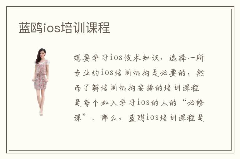 想要学习ios技术知识,选择一所专业的ios培训机构是必要的,然而了解培训机构安排的培训课程是每个加入学习ios的人的“必修课”。那么,蓝鸥ios培训课程是什么呢?蓝鸥ios培训机构主要为学员安排七个阶段的培训课程,从最基础的语言基础的培训,再到UI的设计开发等等,以及最终的企业项目的开发培训,由浅入深,扎实学员的ios基础,打造一个个精英人才。