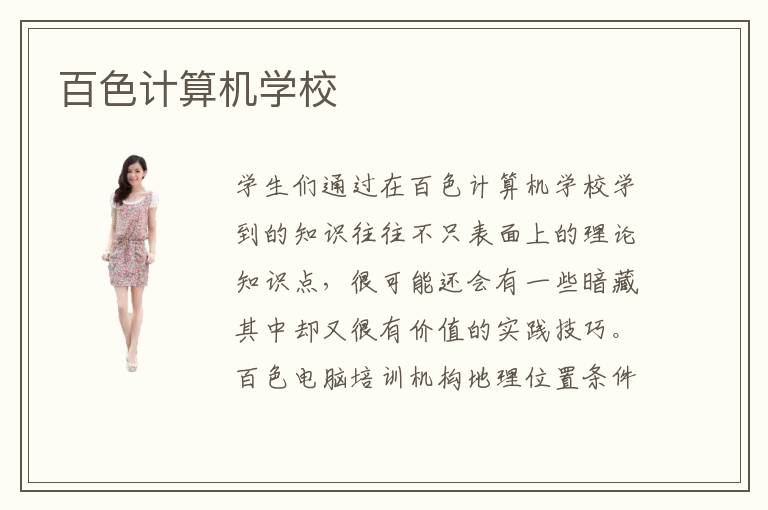 学生们通过在百色计算机学校学到的知识往往不只表面上的理论知识点,很可能还会有一些暗藏其中却又很有价值的实践技巧。百色电脑培训机构地理位置条件优劣如何?百色计算机培训学校地理位置的好坏决定了学生们在眼花缭乱的培训学校中的选择。百色计算机学校在哪里可以找到?优秀的百色计算机学校有多家,其中不发培训质量高、教学水平好的。