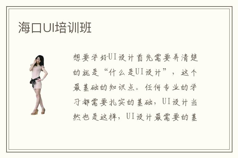 计算机相关专业一般是男生学习的比较多,但是为了今后的就业路途可以更顺利些,有些女生也开始想要学习计算机专业了。然而计算机专业需要清晰的逻辑思维能力以及冷静的分析头脑,对于。一般女生而言学习起来还是比较具有难度的。而UI设计作为计算机专业中最适合女生学习的,在国内目前也具有广泛的发展前景。那么,海口UI培训班怎么样呢?适不适合零基础的女生学习呢?