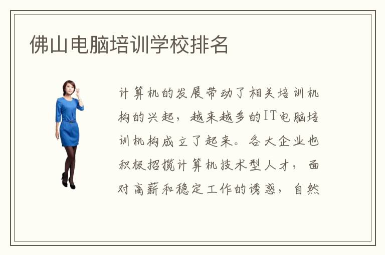 计算机的发展带动了相关培训机构的兴起,越来越多的IT电脑培训机构成立了起来。各大企业也积极招揽计算机技术型人才,面对高薪和稳定工作的诱惑,自然而然,选择IT专业的人就多了起来。佛山地区主打高强度高专业的计算机学习。佛山电脑培训学校电脑培训学校排名口碑情况好不好?佛山电脑培训课程内容有哪些?佛山地区电脑培训学校设立特色吸引人的课程包括有哪些?