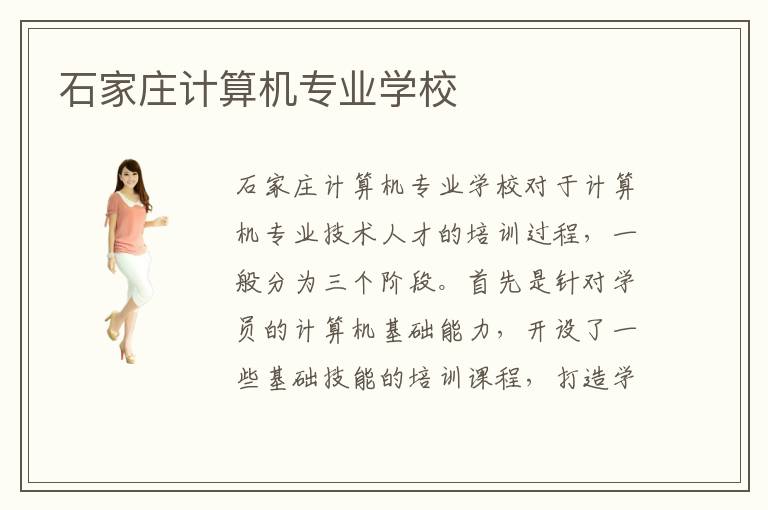 石家庄计算机专业学校对于计算机专业技术人才的培训过程,一般分为三个阶段。首先是针对学员的计算机基础能力,开设了一些基础技能的培训课程,打造学员扎实的计算机基础能力。其次是鼓励学员积极观摩一些前辈对于计算机相关应用的设计过程,从中汲取大量丰富的计算机实践操作经验。最后需要学生根据所学的计算机知识技能,进行一些小项目的独立操作。