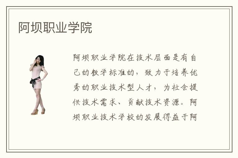 阿坝职业学院在技术层面是有自己的教学标准的,致力于培养优秀的职业技术型人才,为社会提供技术需求、贡献技术资源。阿坝职业技术学校的发展得益于阿坝地区的经济科技实力的增强。阿坝职业技术学校教学内容有什么?阿坝职业技术培训机构教学的方式是多种多样的,学生们的学习积极性有了很大的提高。阿坝职业技术培训学校是国内专业培训的培训平台。