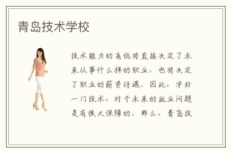 想要学好一门专业技术选择一家实力强劲的学校是很有必要的,青岛技术学校拥有最权威的教学团队,独具特色、因材施教的教学方式让学员更快速更有效的学好专业技术。青岛技术学校通过风趣幽默的课堂教学,让学生拥有了对于专业技能的学习兴趣,让学生在潜移默化中不断提升自己的专业技能,青岛技术学校也是青岛地区广大学子学习技能专业互相交流探讨的平台。