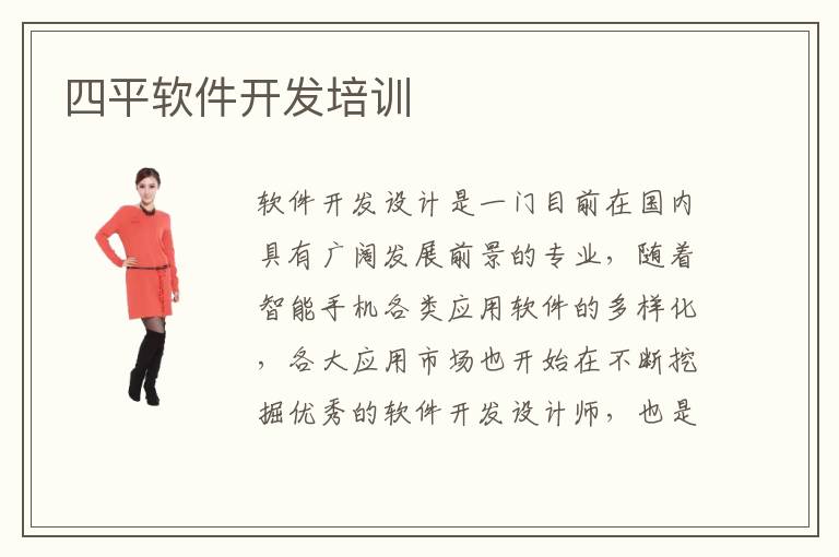 软件开发设计是一门目前在国内具有广阔发展前景的专业,随着智能手机各类应用软件的多样化,各大应用市场也开始在不断挖掘优秀的软件开发设计师,也是为了开发设计出更多能够受到用户喜爱的应用软件。四平软件开发培训中心集结了很多优秀的软件开发工程师,以及一些想要学习软件开发设计专业的学生,有经验的人可以在培训过程中提升专业技能,而一些零基础的则可以开始专业学习。